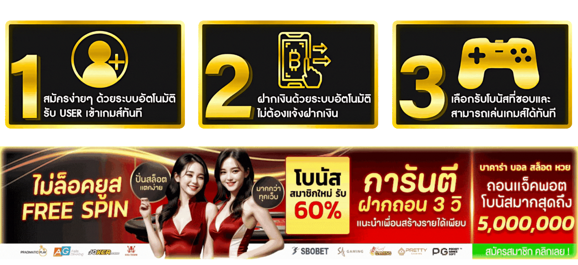 ตอบ : - โบนัสต้อนรับสมาชิกใหม่ 100% - คืนยอดเสีย 10% ทุกสัปดาห์ - แนะนำเพื่อนรับค่าคอมมิชชั่น - สะสมแต้มแลกรางวัล - กิจกรรมแจกเครดิตฟรีประจำเดือน